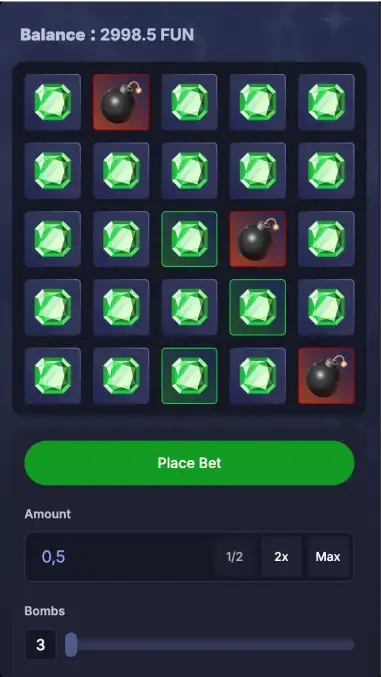 Pick the gems, dodge the bombs! Fast, thrilling gameplay with custom risk levels and instant rewards.