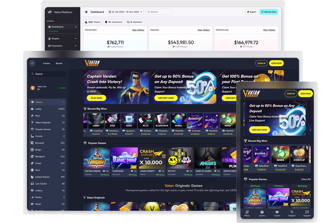 Vatan Platform is a global iGaming software provider specializing in Turnkey Solutions for Casino, Sports Betting, and Affiliate Management, amplified by Blockchain and AI.